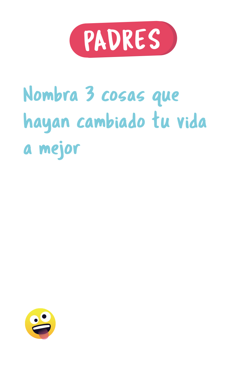 Ponte cómodo con tu familia, saca una de las cartas y descubre la pregunta o el reto que te espera. ¡Responde y disfruta de un rato agradable en familia!
